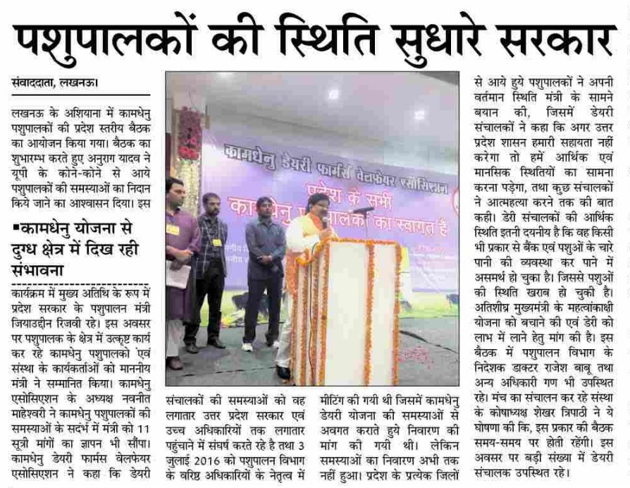 साथियों, उ.प्र. कामधेनु डेयरी फार्मर्स वैलफेयर एसोसिएशन की ३ जुलाई २०१६ को पहली बैठक लखनऊ मे आयोजित हुई